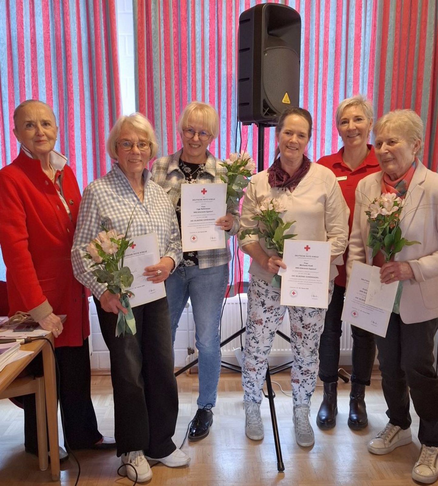 Ein weiterer wichtiger Bestandteil der Veranstaltung waren Ehrungen und Verabschiedungen: Insgesamt sieben Mitglieder wurden für ihre 25-jährige Zugehörigkeit zum Deutschen Roten Kreuz geehrt, vier von ihnen konnten die Auszeichnung persönlich entgegennehmen. Gleichzeitig wurden vier ehemalige Vorstandsmitglieder des DRK-Ortsvereins Kirchdorf feierlich verabschiedet und für ihr langjähriges Engagement gewürdigt.