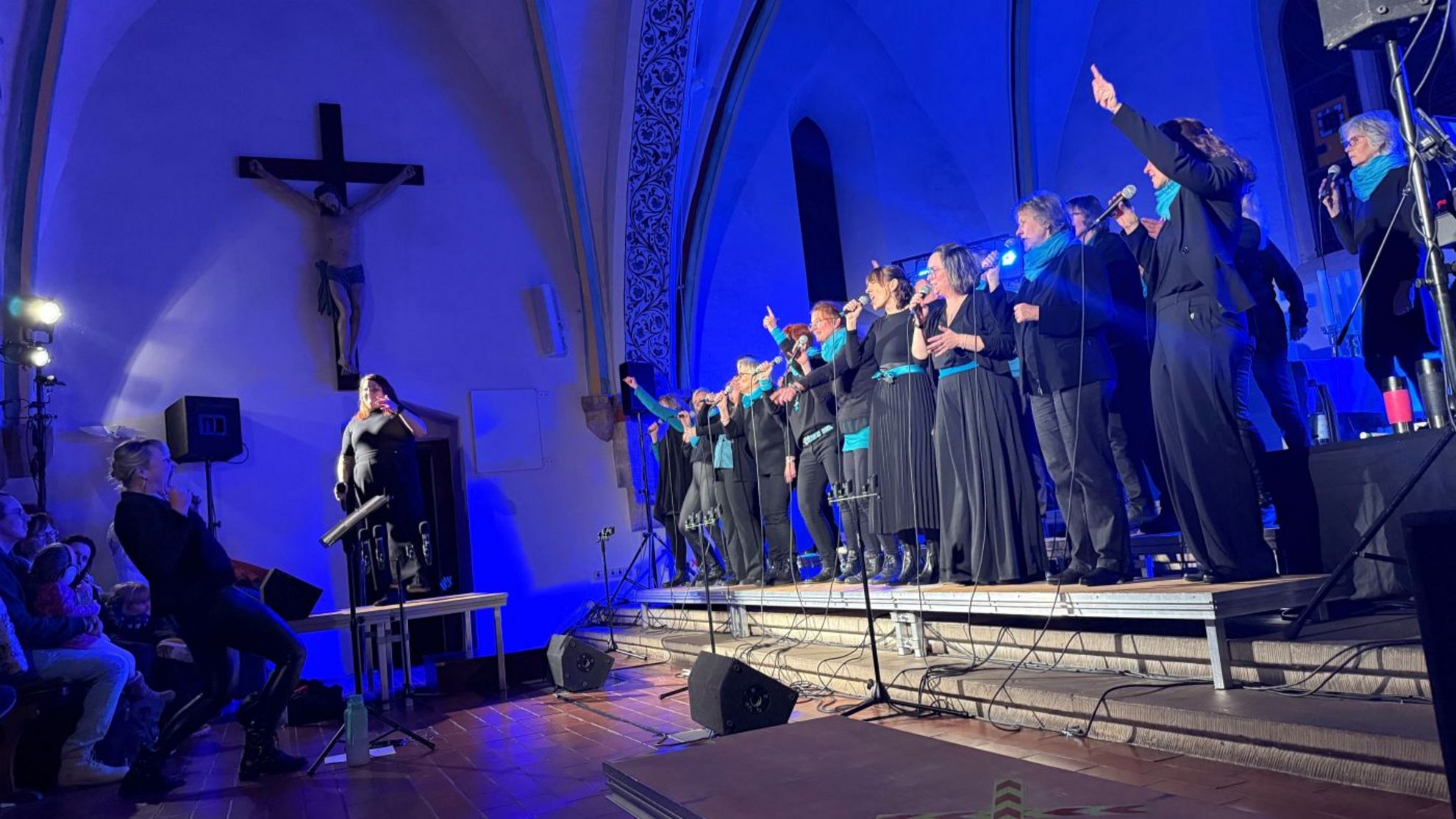 Wie in den vergangenen Jahren war die Kirche bis auf den letzten Platz gefüllt. Der Chor verstand es, das Publikum von Beginn an einzubeziehen – es wurde mitgeklatscht und mitgesungen. Einen wichtigen Beitrag dazu leistete auch die Begleitband mit Claus Feldmann am Piano, Thomas Nagel am Schlagzeug, Torsten Alischöwski am Bass und Mark Christian Barz an der Gitarre.