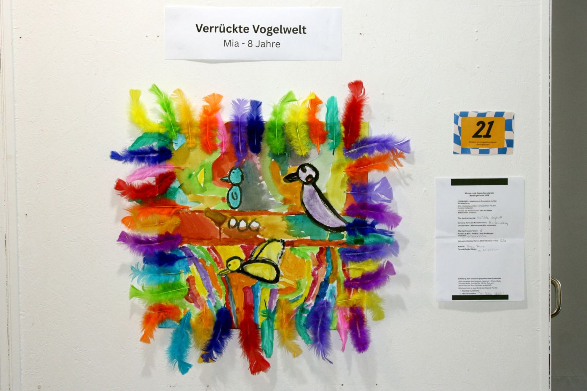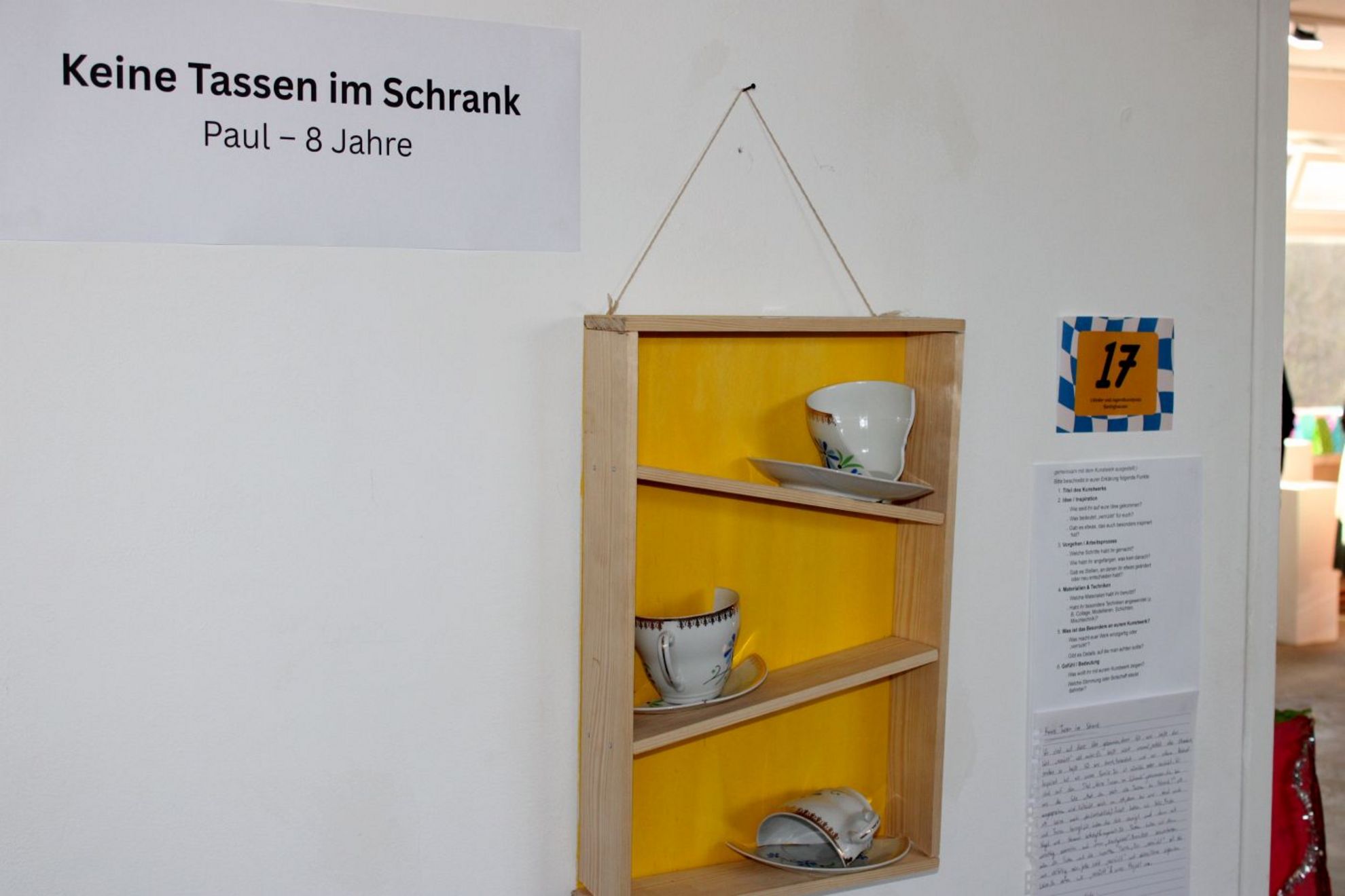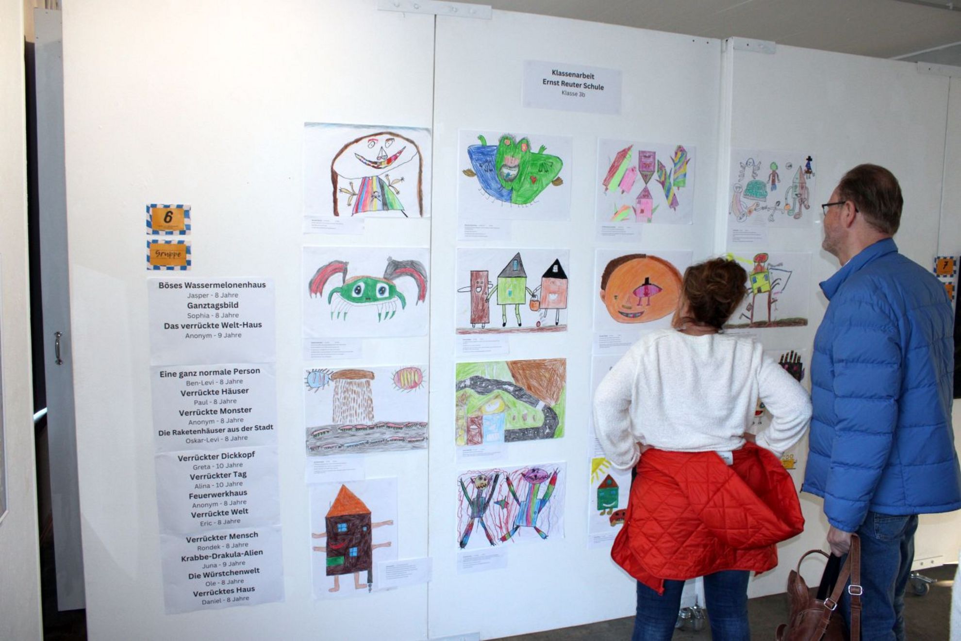 Unter dem bewusst offen gewählten Motto „verrückt“ präsentieren insgesamt 65 Kinder im Alter von 6 bis 10 Jahren ihre neu entstandenen Werke in der Krawatte. Beteiligt sind sowohl Einzelkünstlerinnen und -künstler als auch Gruppen und zwei Schulklassen der Ernst-Reuter-Grundschule und der Wilhelm-Busch-Grundschule.