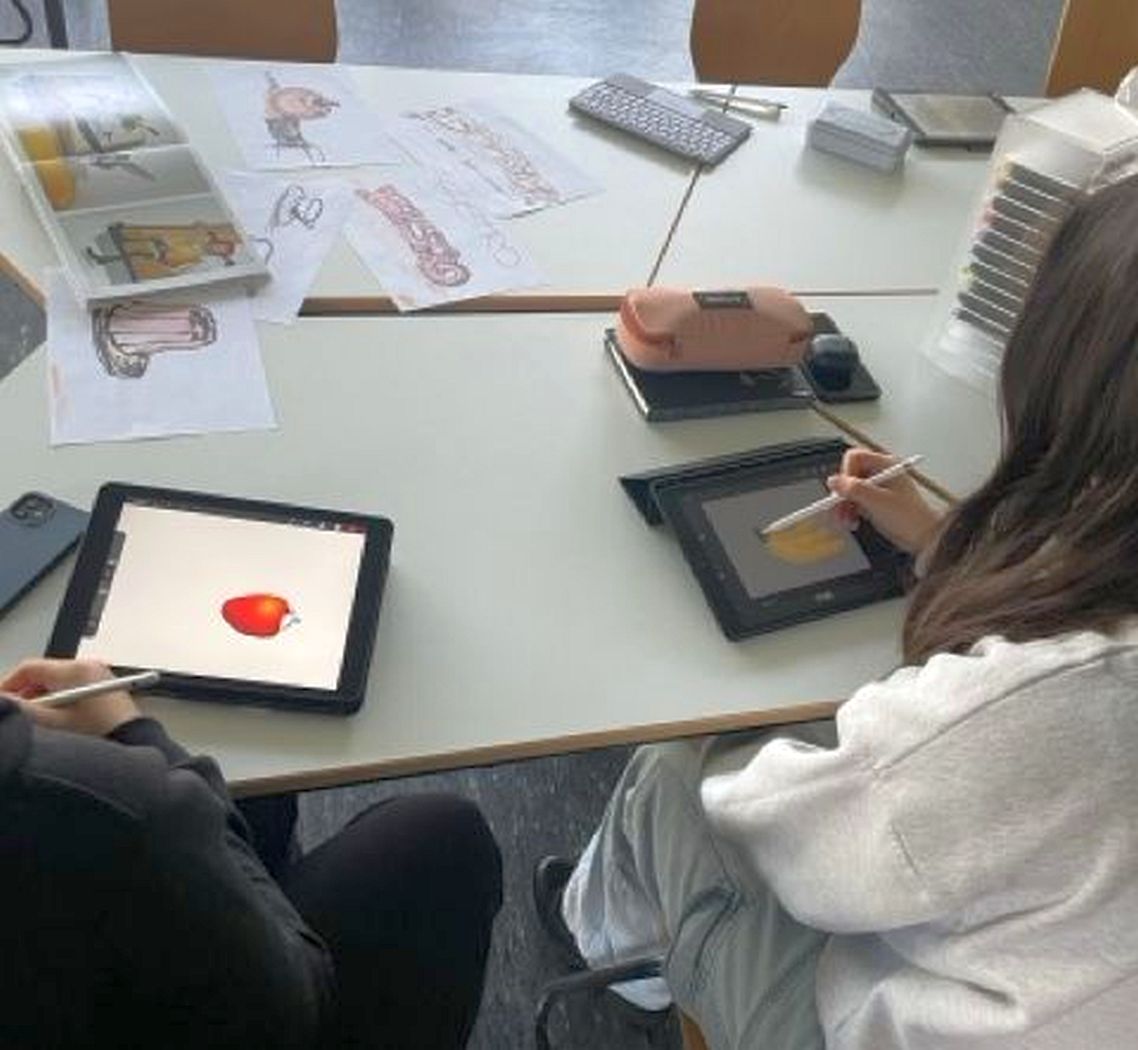 Vom 19. bis 23. Januar gestalteten 13 engagierte Schülerinnen beider Schulen eine rund elf Quadratmeter große Wandfläche im Bistro. Unterstützt wurden sie dabei vom Diplom-Künstler Philipp von Zitzewitz. Nach ersten Sprühübungen im Freien und einer Entwurfsphase entstand ein großformatiges Wandbild in Mischtechnik aus Graffiti-Elementen und Acrylmalerei. Das über sieben Meter breite und etwa 1,5 Meter hohe Kunstwerk zeigt zahlreiche humorvolle und kulinarische Motive und lädt dazu ein, bei den Mahlzeiten immer wieder neue Details zu entdecken.