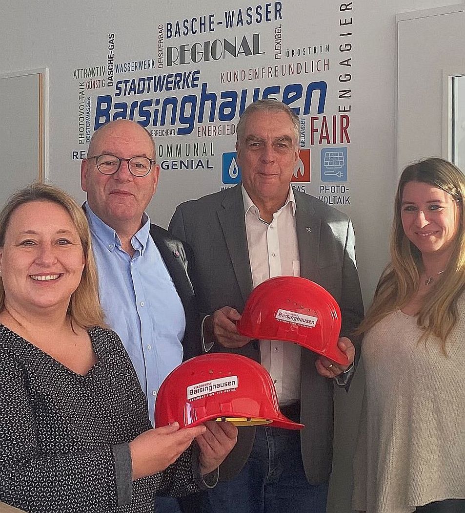 In der vergangenen Woche übergaben die Stadtwerke-Mitarbeiterinnen Jennifer Gäfke und Anabell Zimmermann die Helme offiziell an die Geschäftsführer Wilfried Klatt und Hans-Werner Röth der Alten Zeche GmbH. Mit der Spende wird die Sicherheitsausstattung für Besucher weiter verbessert.