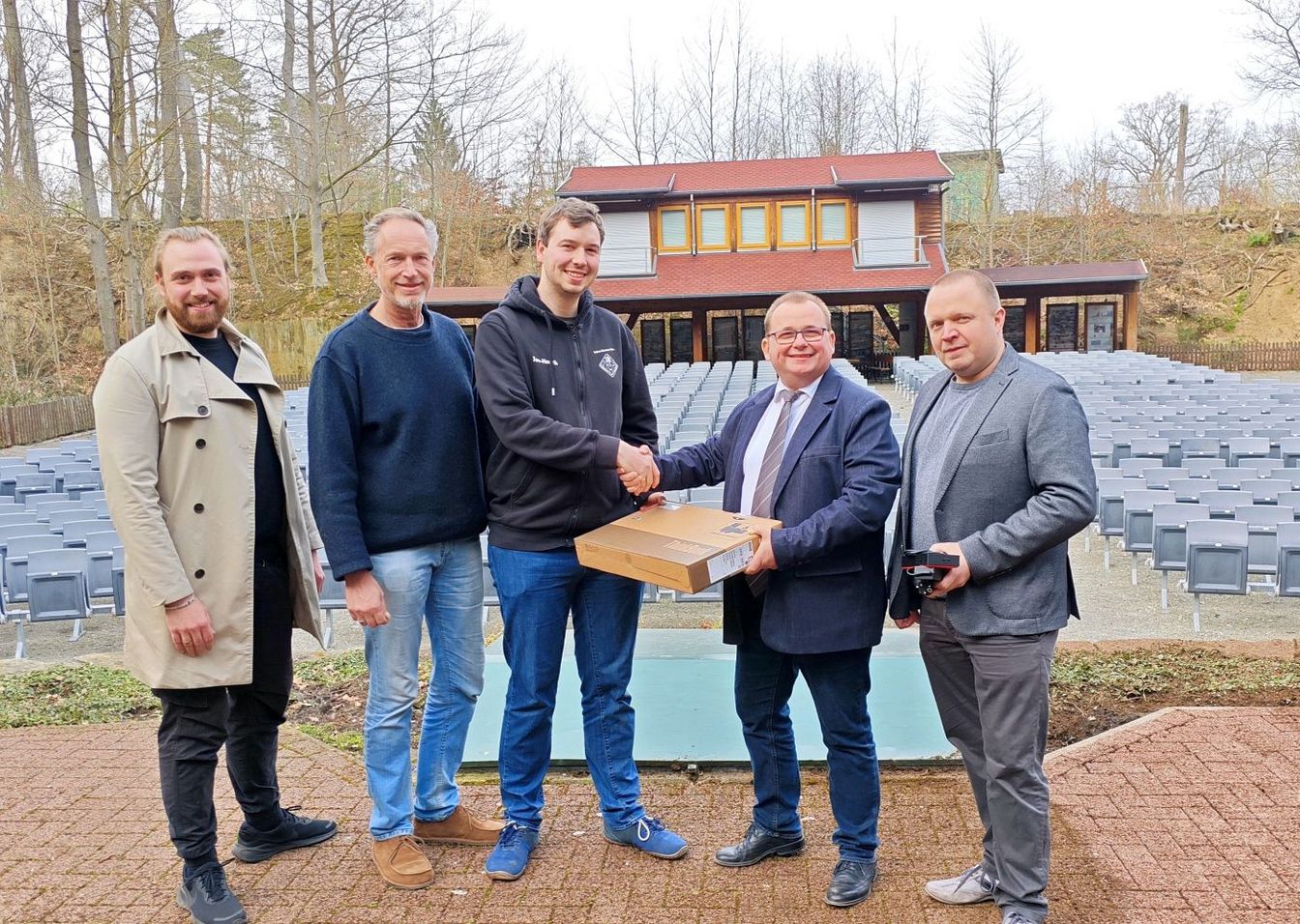 „Wir spenden gerne für Jugendarbeit, aber wir suchen immer auch den Bezug zu unserem Unternehmen“, sagt Viebahn. „Wir unterstützen das Technik-Team der Freilichtbühne daher sehr gerne.“ Auch Karasch betont: „Bei der Freilichtbühne fallen immer Kosten für Technik an. Es ist uns eine Herzensangelegenheit, hier sinnvoll zu helfen.“