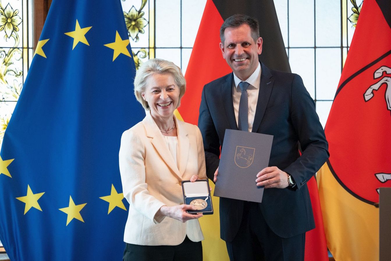 Hannover. Ministerpräsident Olaf Lies hat am Dienstag die Präsidentin der Europäischen Kommission, Ursula von der Leyen, mit der Niedersächsischen Landesmedaille geehrt. Mit der höchsten Auszeichnung des Landes würdigt Niedersachsen ihre herausragenden Verdienste um Niedersachsen, Deutschland und Europa.