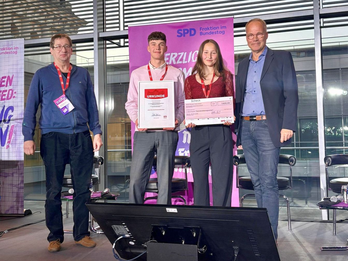 Berlin/Springe. Am 22. April wurde im Deutschen Bundestag der Otto-Wels-Preis für Demokratie verliehen. Unter dem Motto „#MachDenUnterschied: Haltung zeigen!“ würdigte die SPD-Bundestagsfraktion bereits zum elften Mal junge Menschen, die sich für Demokratie, Freiheit und gesellschaftlichen Zusammenhalt engagieren. Drei Projekte erhalten jeweils eine Förderung in Höhe von 1.600 Euro zur Umsetzung ihrer Ideen.