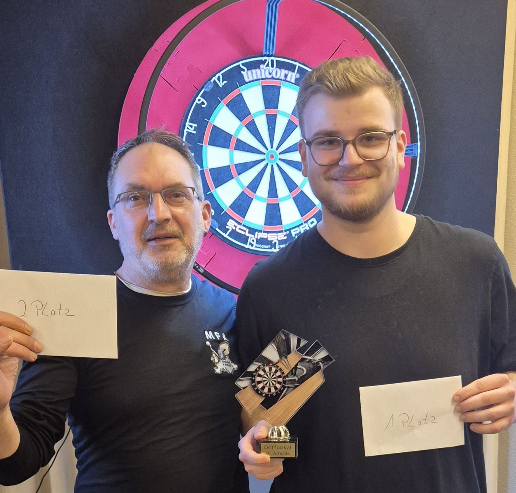 Alferde. Spannung bis zum letzten Wurf: Beim 3. Alferder Dart-Dorfpokal des SC Alferde v.1962 e.V. im Dorfgemeinschaftshaus Alferde setzte sich Pascal Biel in einem packenden Finale mit 3:1 gegen Frank Becker durch und sicherte sich damit den begehrten Dart-Wanderpokal.