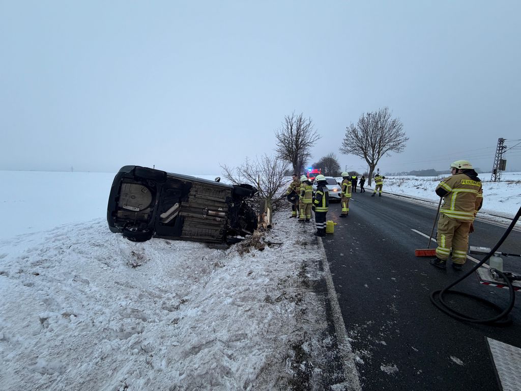 PKW überschlägt sich und bleibt im Graben liegen