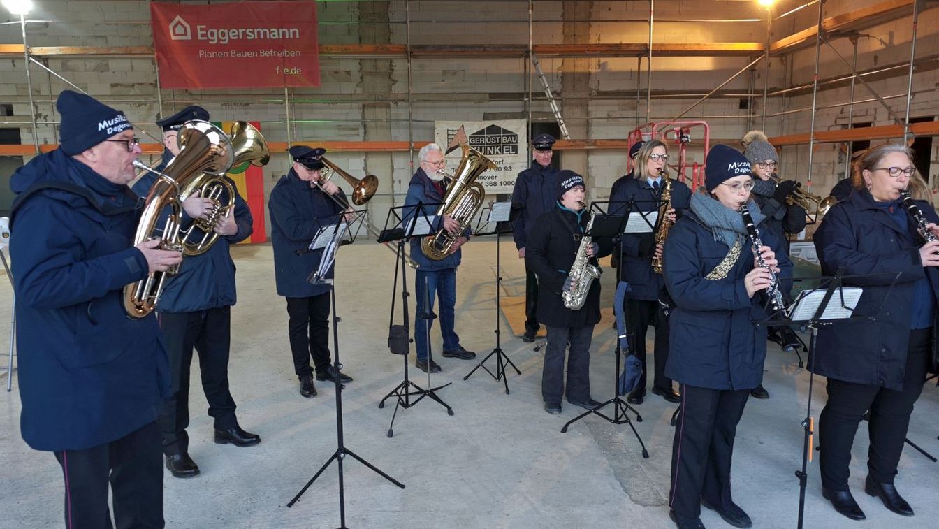 Nachdem der Musikzug der Feuerwehr Degersen den feierlichen Rahmen eröffnet hatte, hielt Dachdeckermeister Frank Sprenger den traditionellen Richtspruch. Bürgermeister Ingo Klokemann zeigte sich erstaunt, aber zugleich sehr erfreut über den raschen Baufortschritt: „Am 11. August haben wir den ersten Spatenstich gefeiert und bereits am 13. Oktober den Grundstein gelegt. Nun feiern wir Richtfest – und es gibt kaum etwas Neues zu sagen, so schnell schreitet der Bau voran.“