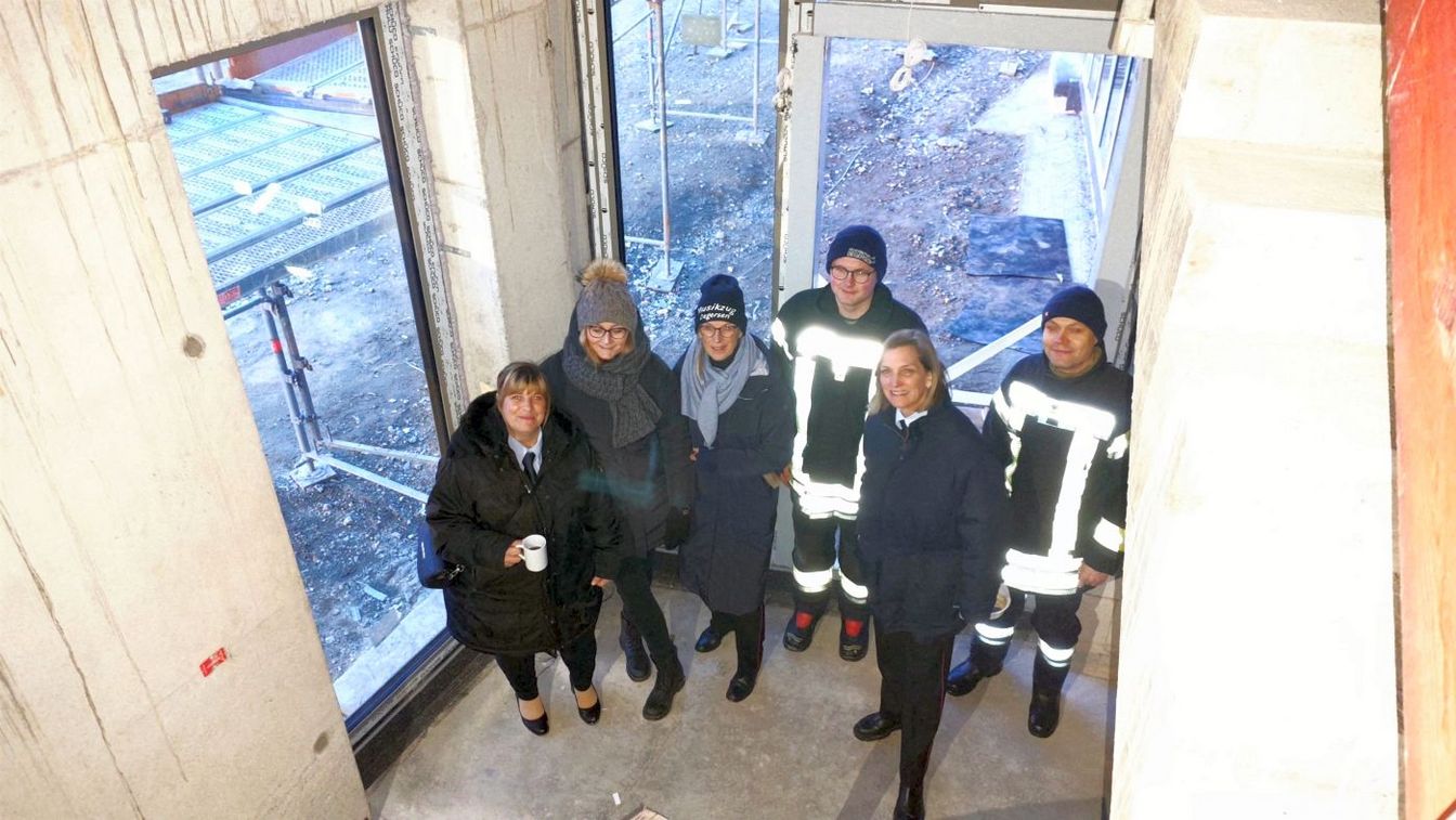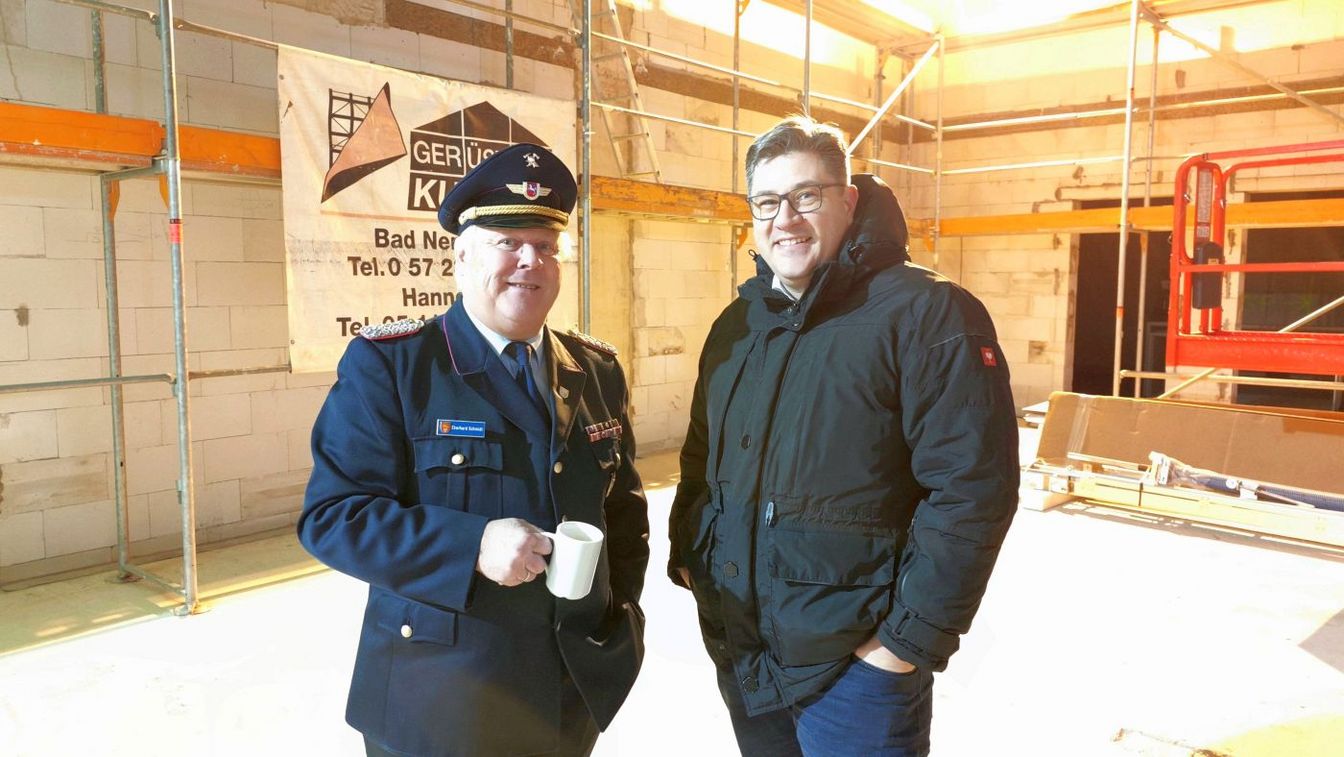 Ortsbrandmeister Peter Theesen und seine Stellvertreterin Mareike Theesen zeigten sich ebenfalls beeindruckt von den schnellen Fortschritten. „Es ist Wahnsinn, was wir hier bekommen.“ Mit vier Stellplätzen und den entsprechenden Räumlichkeiten sei die Ortswehr für die Zukunft sehr gut aufgestellt. Das bisherige Feuerwehrhaus sei seit Jahren zu klein für die Anforderungen der Ortsfeuerwehr gewesen.