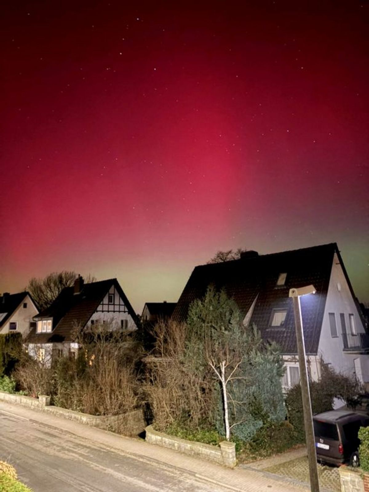 Mathias Geiger aus Wennigsen hielt den besonderen Moment mit seiner Kamera fest und stellte das beeindruckende Bild zur Verfügung. „Als sich die ersten Lichtbänder am Himmel zeigten, machten sich zahlreiche Beobachter spontan auf den Weg nach draußen, um das faszinierende Schauspiel mitzuerleben“, so Geiger, „Für einen kurzen Moment kehrte Ruhe ein – begleitet von Staunen und stiller Bewunderung. Ein Anblick, der vielen in Wennigsen noch lange in Erinnerung bleiben dürfte.“