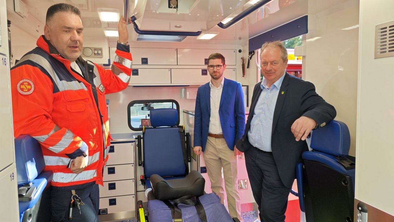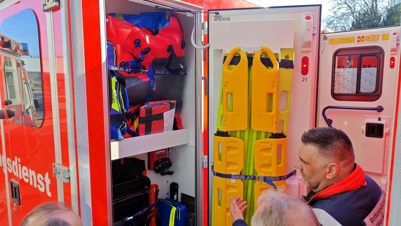 Viele Details an den neuen Fahrzeugen wurden überarbeitet, erklären die Rettungsdienstleiter Dirk Schumacher und Frederik Folchmann. Dadurch werde die Arbeit im Alltag leichter und im Notfall auch schneller. Neu sei unter anderem, dass viele Geräte nun auch von außerhalb des Fahrzeugs erreichbar sind. „So müssen die Mitarbeiter im Einsatz nicht immer in das Fahrzeug steigen“, erläuterte Schumacher.
