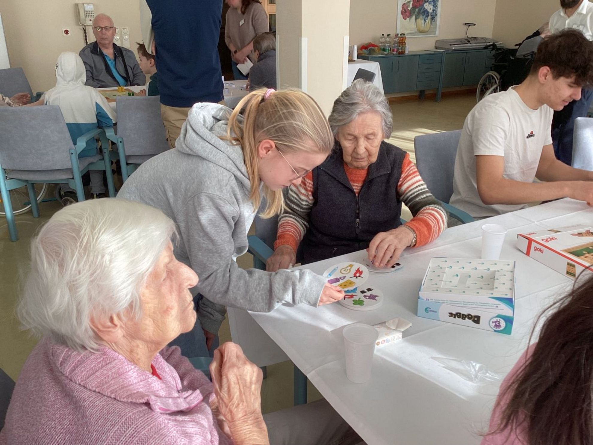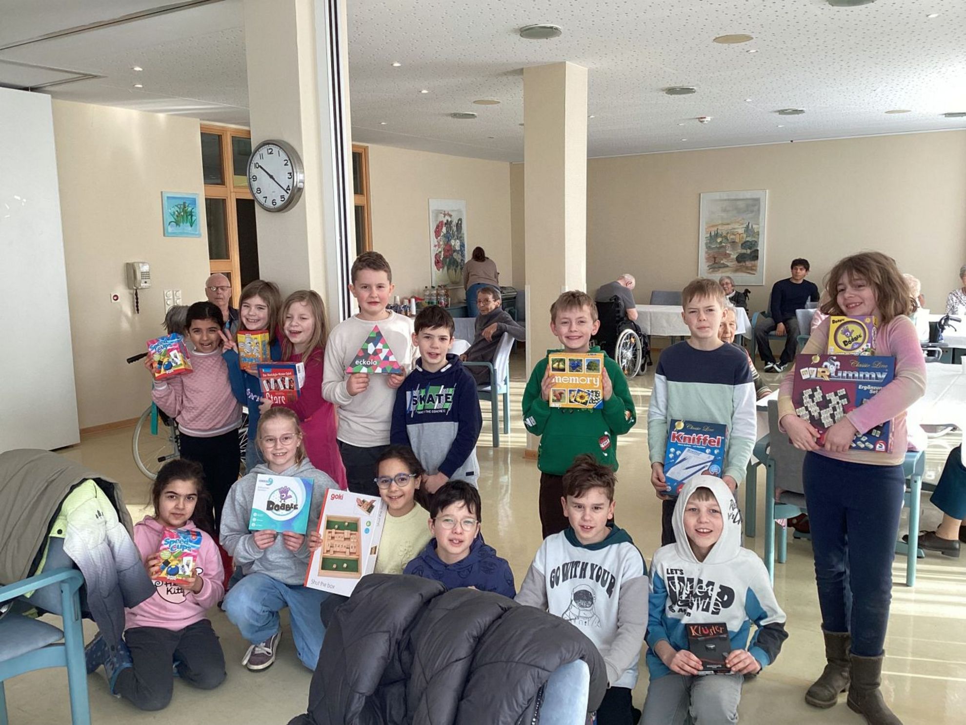 Gemeinsam mit dem Leiter des Alten- und Pflegeheims überlegte Klassenlehrerin Frau Maaß, wofür das Geld eingesetzt werden könnte. Der Wunsch fiel auf verschiedene Gesellschaftsspiele, die künftig für gemeinsame Spielrunden genutzt werden können.