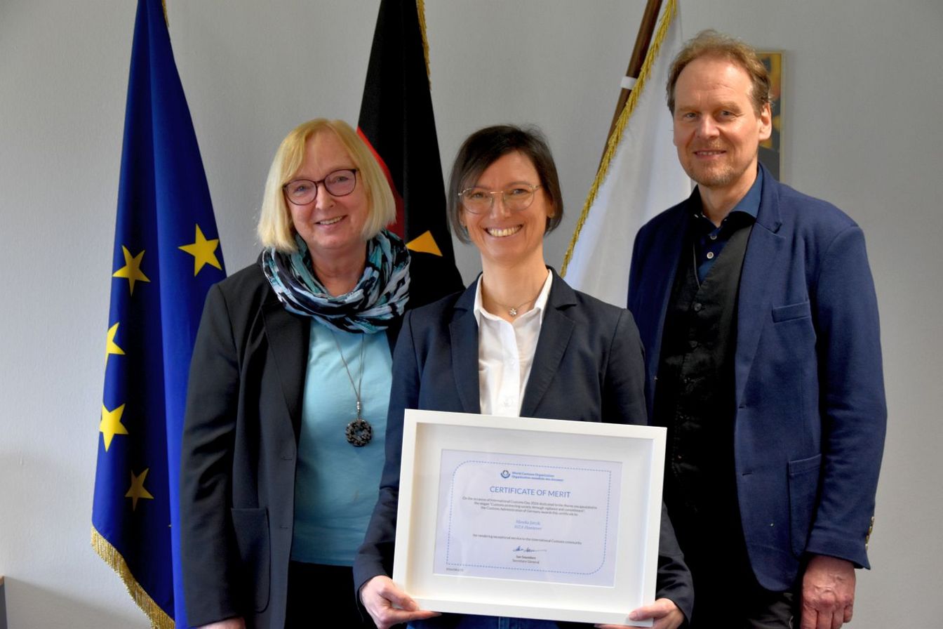 Hannover/Pattensen. Eine Zöllnerin des Prüfungsdienstes des Hauptzollamts Hannover, Zollamtfrau Monika Jorzik, erhielt am 19. Februar 2026 feierlich ein Zertifikat der Weltzollorganisation als Auszeichnung für besondere Dienste für die internationale Zoll-Gemeinschaft.