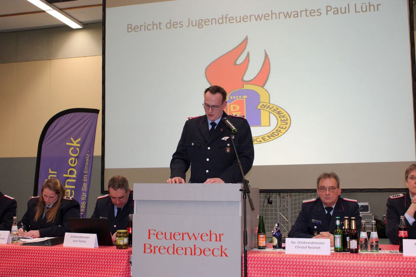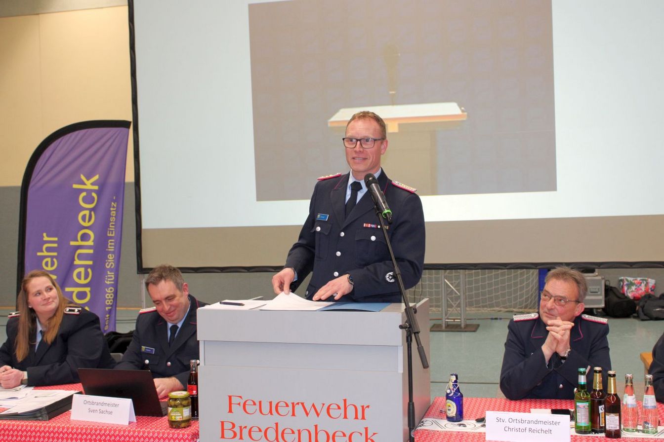 Zugführer Michael Hirt berichtete von einem ruhigen Einsatzjahr. Wenn man sich allerdings alles anschaue, dann sehe man schnell, für Ruhe und Erholung war trotz der geringeren Einsatzhäufigkeit keine Zeit vorhanden. Hirt berichtete von diversen Ausbildungsdiensten und Arbeitsgruppen, die sich zur Fahrzeugbeschaffung, dem Neubau des Feuerwehrhauses und der Vorbereitung für das Feuerwehrfest trafen. Dieses soll vom 14. bis 16. August stattfinden. Es wird 140 Jahre Feuerwehr Bredenbeck und 10 Jahre Kinderfeuerwehr Bredenbeck gefeiert. „Feuerwehr ist für uns nicht nur ein Hobby, Feuerwehr ist Teamspirit, Kameradschaft, Bereitschaft Lebenszeit für die Gesellschaft zu opfern, um dann Hilfe leisten zu können, wenn sie gebraucht wird“, so Hirt.