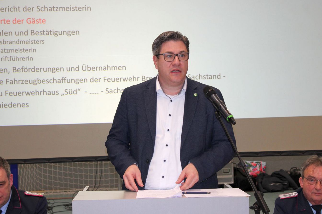 Ortsbrandmeister Sven Sachse freute sich über 150 Anmeldungen für die Versammlung und dankte allen Unterstützern, die die Verlegung des Veranstaltungsortes in die Sporthalle möglich machten. Er zeigte sich stolz auf die Mitgliederentwicklung. „Wir haben die Marke von 750 Mitgliedern überschritten und haben Zuwächse in allen Abteilungen.“ Daher sei er froh, dass „nur“ 150 Personen gekommen waren.