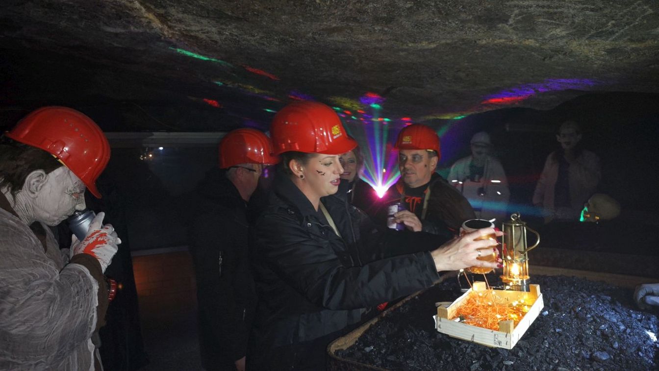 Am Donnerstagabend wurde im Klosterstollen eine ganz besondere Halloween-Party veranstaltet. Grubenführer Wilfried Klatt, Vorstandsmitglied des Vereins „Alte Zeche“, organisierte gemeinsam mit weiteren Grubenführern die außergewöhnliche Idee. „Schon vor einem Jahr haben wir uns gedacht, Halloween passt doch eigentlich hervorragend in die Schächte des Stollens“, erinnern sich Klatt und seine Frau Nicole. Vor sechs Wochen starteten dann die Vorbereitungen für die Horror-Show unter Tage. Zwölf Gäste wurden zu der Veranstaltung eingeladen, die auch als Testlauf gilt, um die Halloween-Einfahrten im nächsten Jahr vielleicht offiziell für Besucher anzubieten.