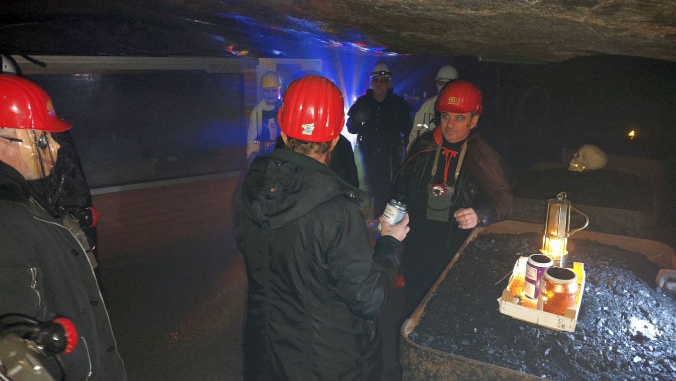 Angekommen im Stollen wurde die Gruselgeschichte weitergesponnen und die Besucher wurden durch die Schächte geführt. Im Stollen blieben alle Lichter aus – bis auf einige bewusst gesetzte Highlights, um Dekorationen wie blutige Macheten und Äxte, Totenschädel und all das, was die Finsternis sonst noch an Grauen hervorbringen kann, zu inszenieren. „Man braucht schon einige Verrückte im Team, um so eine Idee glaubhaft umzusetzen“, freut sich Klatt über die Stimmung unter Tage. Mit sechs Grubenführern sorgte das Team für Sicherheit, aber auch für Nervenkitzel.