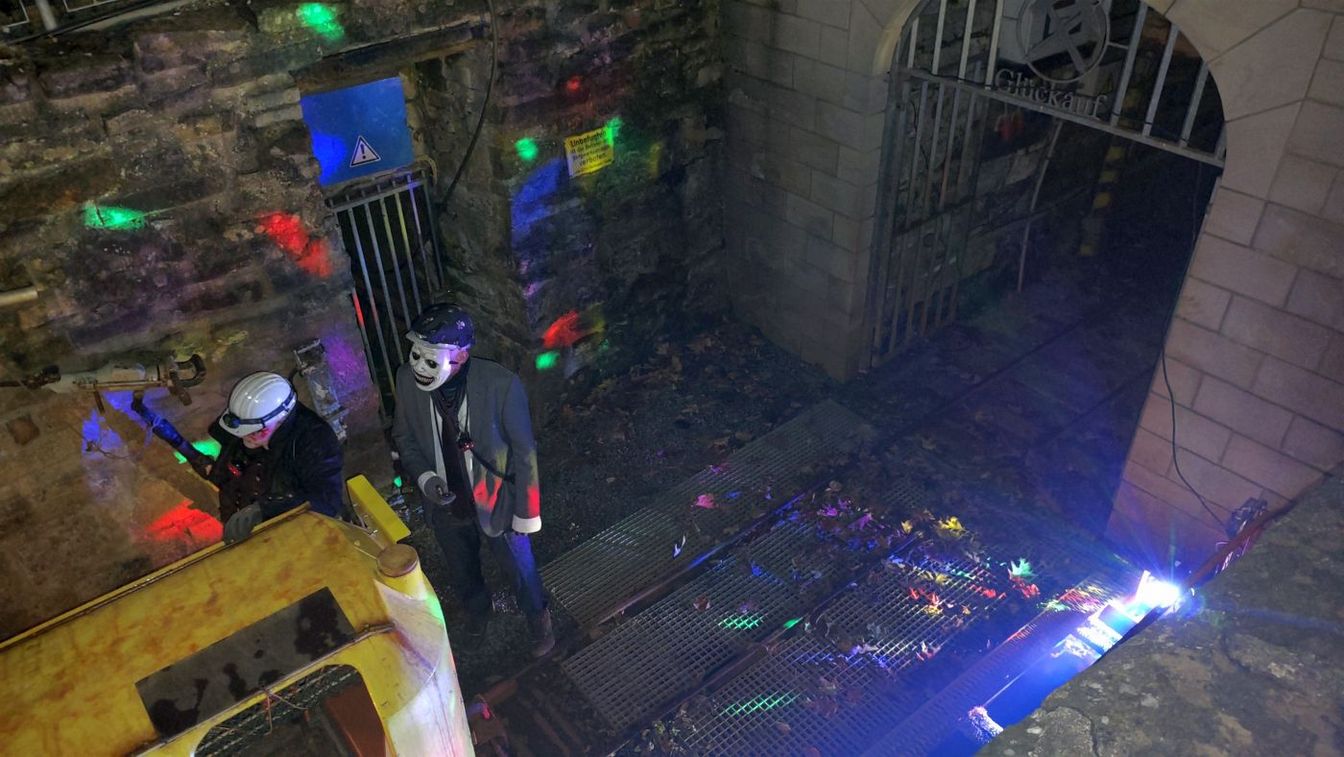Egal ob Grubenführer, Zombie oder Schattenlord – Sicherheit geht immer vor. Daher gab es für die kostümierten Besucher vor der Einfahrt die obligatorische Sicherheitseinweisung. Diese ging jedoch über in eine Gruselgeschichte, denn es hatte vor Jahren einen Unfall im Stollen gegeben, und seitdem soll der Stollen verflucht sein und ein Grubenarbeiter noch immer sein Unwesen in den Gängen treiben.
