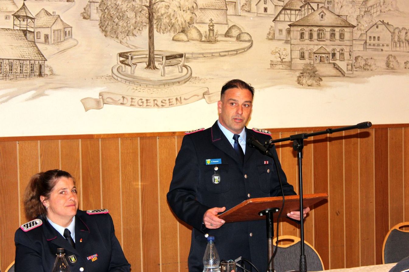 Erst am 1. Dezember haben Ortsbrandmeister Peter Theesen und seine Ehefrau Mareike Theesen als stellvertretende Ortsbrandmeisterin ihre Ämter übernommen. Zuvor hatte Jörg Ommen das Amt des Ortsbrandmeisters abgegeben, nachdem er zum Gemeindebrandmeister ernannt worden war.