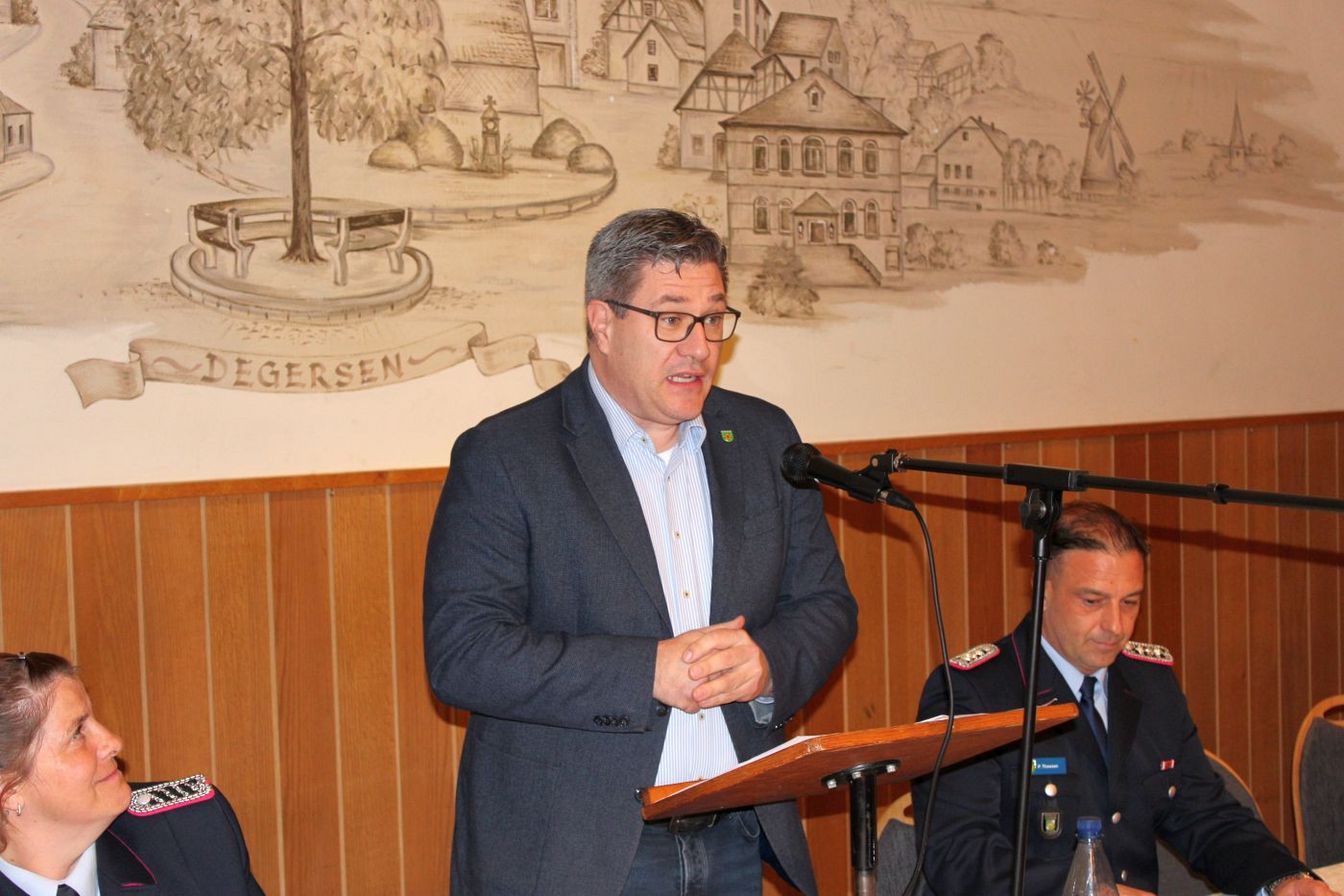 „Ich bin guter Hoffnung, dass dies die letzte Versammlung sein wird, bevor der Einzug ins neue Feuerwehrhaus erfolgt.“ Der Bau soll im Sommer fertig werden. Verzögerungen seien bislang immer wieder aufgeholt worden. „Manche Bürger fragen sich jedoch, warum bekommt die Feuerwehr Degersen für 5 Millionen so ein großes Feuerwehrhaus“, erklärte der Bürgermeister: „Nun, die Ansprüche wachsen. Zwei Stellplätze sind für die Ortsfeuerwehr und zwei Stellplätze für Fahrzeuge der Gemeindefeuerwehr. Wir erfüllen damit das, was von der Feuerwehrunfallkasse vorgegeben wird.“