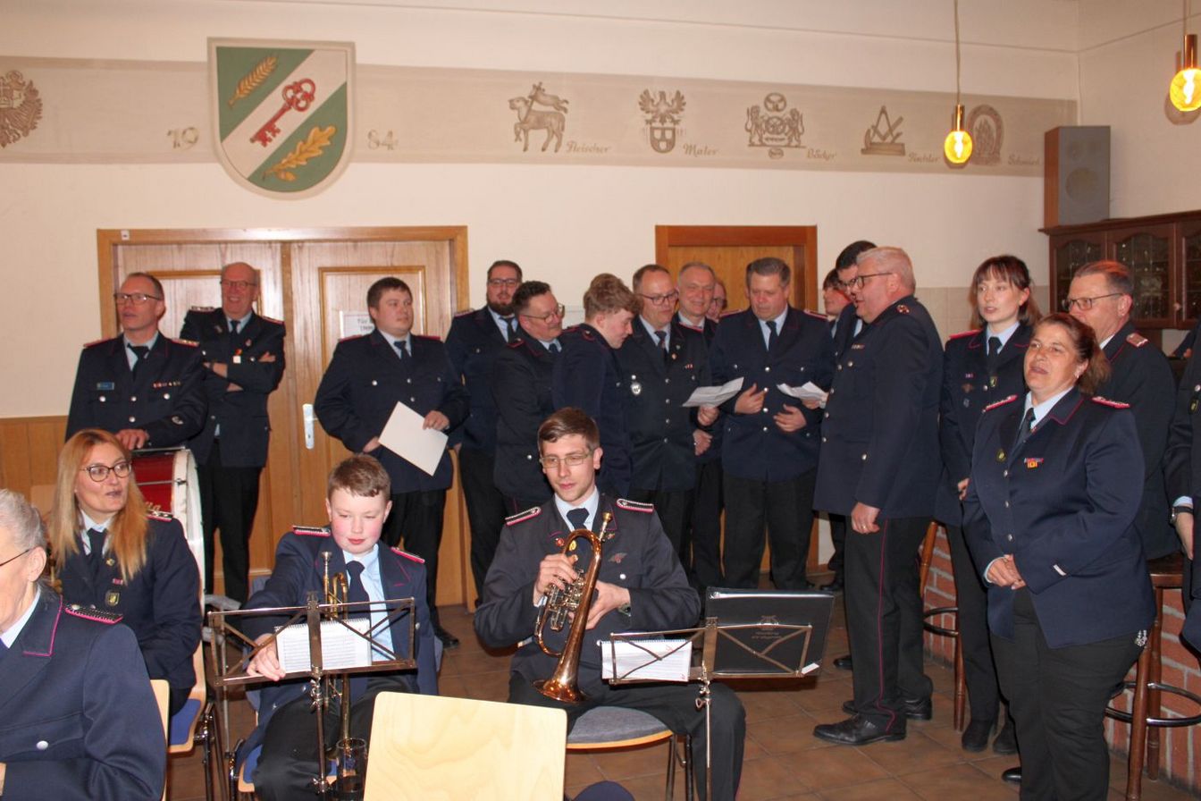 Zum Abschluss dankte Ortsbrandmeister Theesen allen Kameraden, der Gemeindefeuerwehrführung, der Gemeindeverwaltung und allen weiteren Unterstützern für die gute Zusammenarbeit. Den Abschluss machte dann der Musikzug, bevor gemeinsam gegessen wurde.