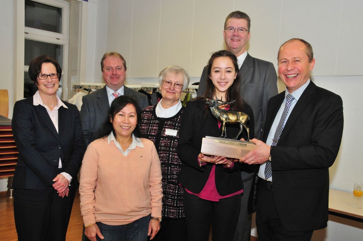 Die 15-jährige Schülerin Khim Annelie Schröder ist heute im Gemeindehaus der Mariengemeinde mit dem Preis "Barsinghäuser Hirsch" der Stadtsparkasse Barsinghausen (SSK) ausgezeichnet worden.