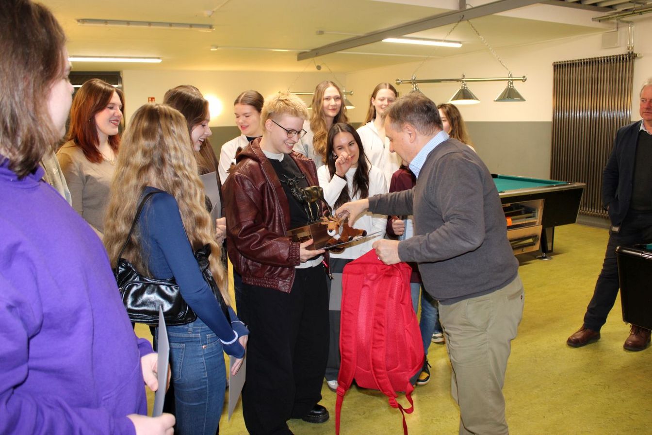 Dann wurde der ‚Barsinghäuser Hirsch‘ feierlich an die Mitglieder Lotta Aye, Emma Aye, Lena Bennigstorf, Felicia Bitiyev, Emilia Bohrsen, Justus Budde, Mick Emme, Angelina Fürst, Samuel Levi Grützmacher, Nils Köhler, Lena Goihl, Maja Macha, Luana Riemer, Neele Stryk, Tilo von der Wall übergeben. Alle erhielten eine Urkunde. Wo der Wanderpokal aufgestellt wird, wird noch entschieden. Von der Sparkasse gab es als Alternative einen ‚Barsinghäuser Hirsch‘-Stofftier. Über die Verwendung des Preisgeldes von 1.000 Euro werden die Jugendlichen gemeinsam entscheiden, erklärte Björn Wende.