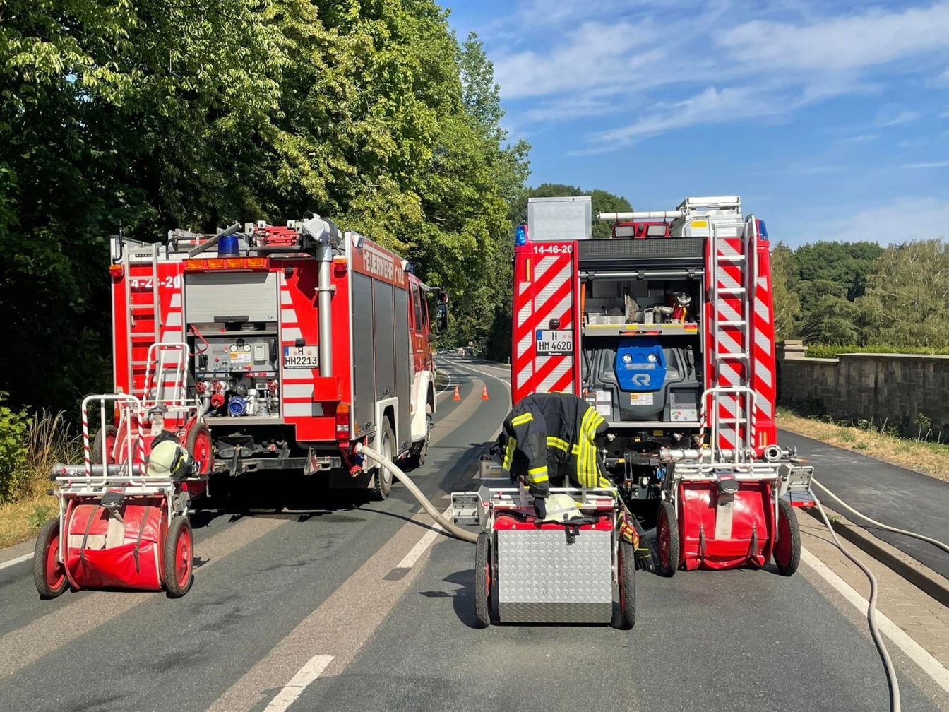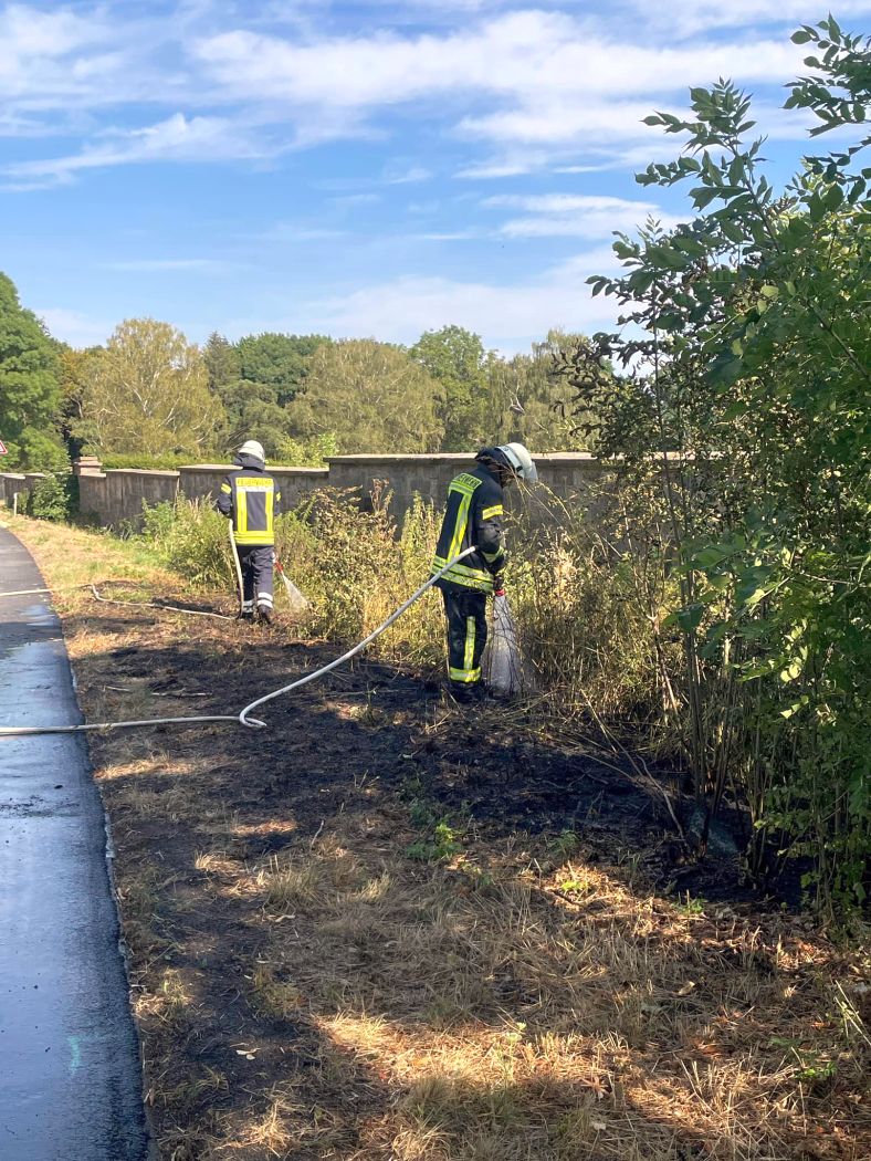 Eckerde. Im Anschluss an den Flächenbrand an der K239, ging es für die Ortswehren Eckerde und Großgoltern direkt weiter zum Wasserwerk Eckerde. Hier brannte auf circa 30 Quadratmetern Gestrüpp am Straßenrand. Mit zwei Strahlrohren wurde das Feuer auch hier gelöscht..