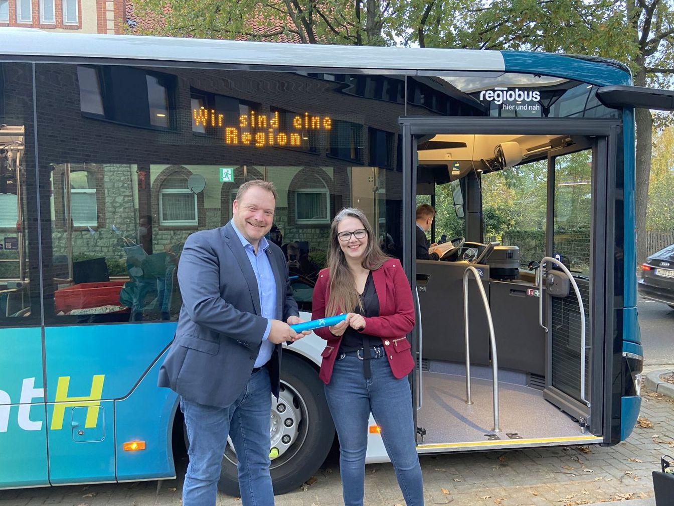 Springe/Region. Die 21 Städte und Gemeinden in der Region Hannover innerhalb eines Tages im Rahmen einer Bustour verbinden: Diese Idee stand Pate für die 21x30-Tour, die das Fahrgastfernsehen in Kooperation mit der Region Hannover am 1. November organisiert hat. Auch die con-nect.de/leine-on.de Redaktion war bei der Aktion mit an Bord und hat seine Kommunen im Berichtsgebiet gemeinsam mit dem Regionspräsidenten angefahren. Als erstes begrüßte Steffen Krach, Regionspräsident, um 7.30 Uhr den Springer Bürgermeister Christian Springfeld, dann startete die gemeinsame Busfahrt von Springe nach Pattensen, die Zeit für ein Gespräch gab.