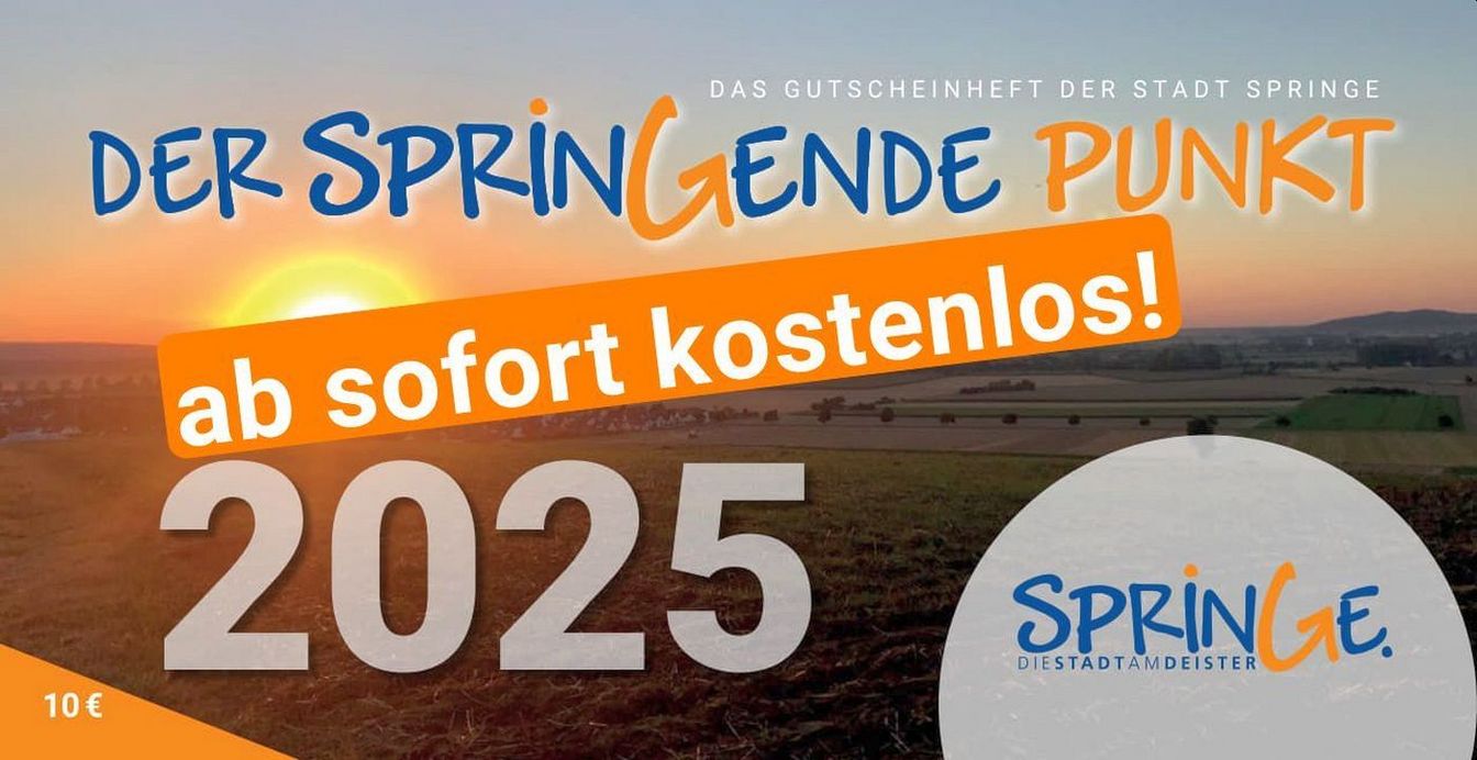 Springe. Ab sofort ist das Gutscheinheft „Der SPRINGEnde Punkt“ 2025 kostenlos in der Tourist-Information in Springe erhältlich. Es enthält zahlreiche Rabatte und Angebote, die noch bis zum 31. Dezember 2025 bei teilnehmenden Einzelhändlern, Dienstleistern und Kultureinrichtungen eingelöst werden können.