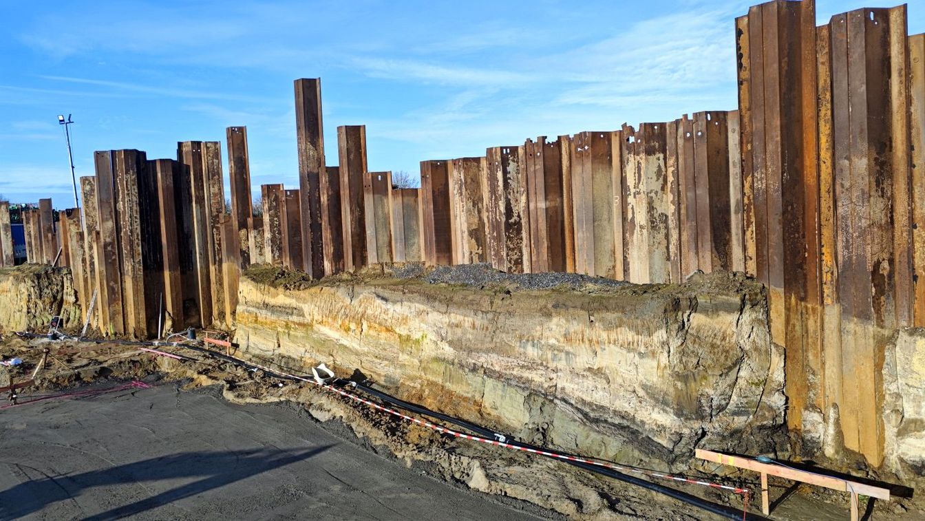 Zum Anfang des Jahres machte eine mit Grundwasser vollgelaufene Baugrube den Bauarbeitern in Eckerde zu schaffen, weshalb rund 180 Spundbohlen rund um die Baugrube eingebracht wurden. 18 Meter tief mussten die sechs tonnenschweren und 22 Meter langen Bohlen mit großem Aufwand ins Erdreich getrieben werden. „Doch die Maßnahme war erfolgreich, weshalb trotz einer kleineren Verzögerung weitergearbeitet werden konnte“, erklärt Shterev die zurückliegende Aktion.