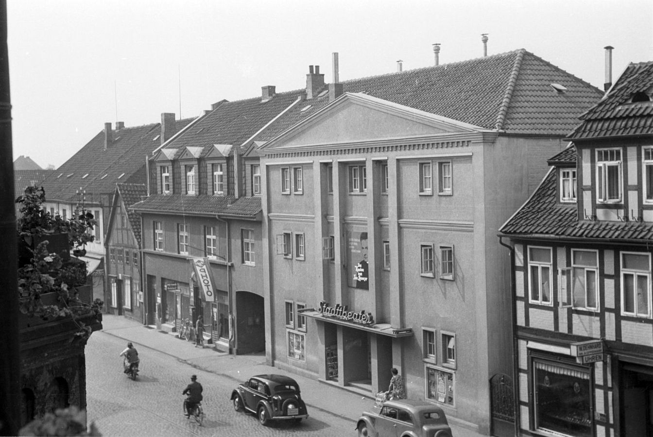 Das Stadttheater wurde 1950 gebaut und eröffnet – als zu seiner Zeit modernes Kino, das im November mit der Filmoperette „Schwarzwaldmädel“ eingeweiht wurde. Schon früh wurde es aber auch als Bühne für Theateraufführungen genutzt: Schillers „Don Carlos“ setzte sogleich Maßstäbe. Rasch entwickelte sich das Stadttheater zum kulturellen Zentrum der Stadt und war mit 550 Plätzen auch über Wunstorf hinaus von großer Bedeutung. Immer wieder traten hier prominente Schauspieler auf – so z.B. Heidi Kabel, Manfred Krug, Herbert Bötticher u.v.a. Wiederholt wurde es umfassend renoviert und modernisiert, zuletzt 2022, um es den sich wandelnden Anforderungen anzupassen und für die Zukunft fit zu machen. Heute finden dort auch Varieté-, Konzert-, Comedy und andere Veranstaltungen statt – das Stadttheater ist aus dem Wunstorfer Kulturleben nicht mehr wegzudenken.